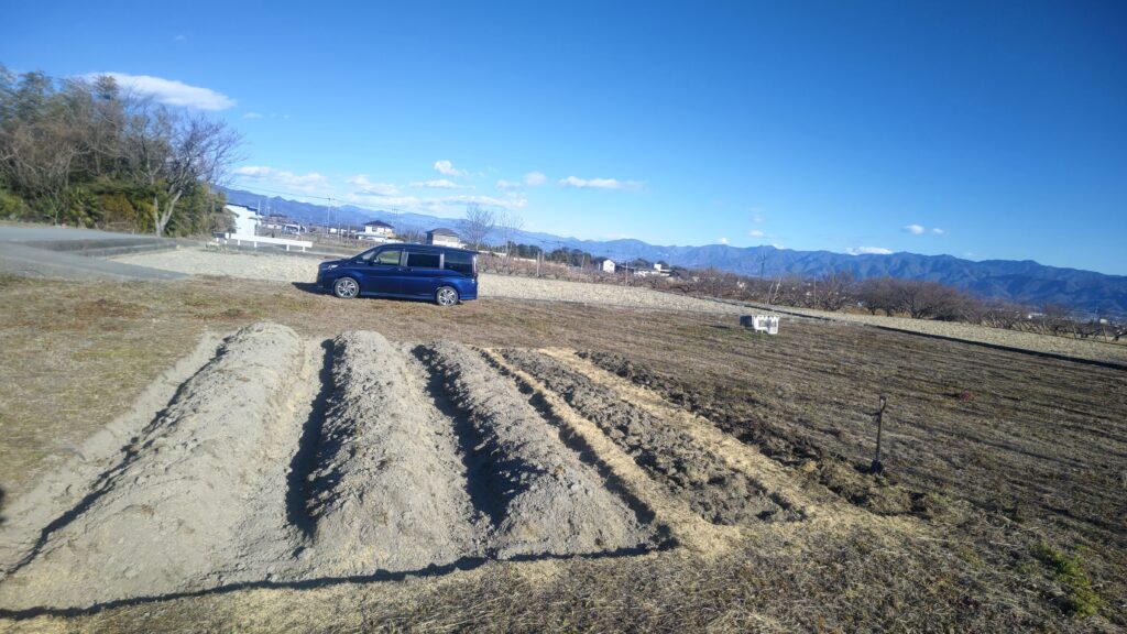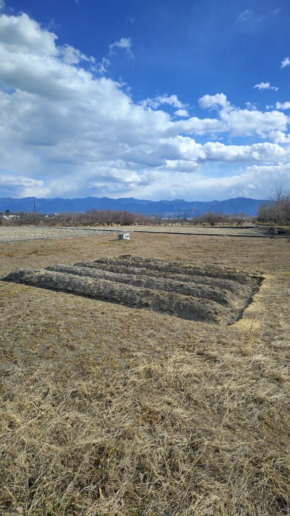 一反の畑を借りている場所に、菌ちゃん農法の畝を作っていっている。また新たに1本追加して、4本の畝が出来た。 雄大な景色の中での作業は、とっても気持ちが良い。気温は低いけれど、太陽の日差しを浴びていると暖かく、農作業をしていると汗ばんでくる... 移住生活