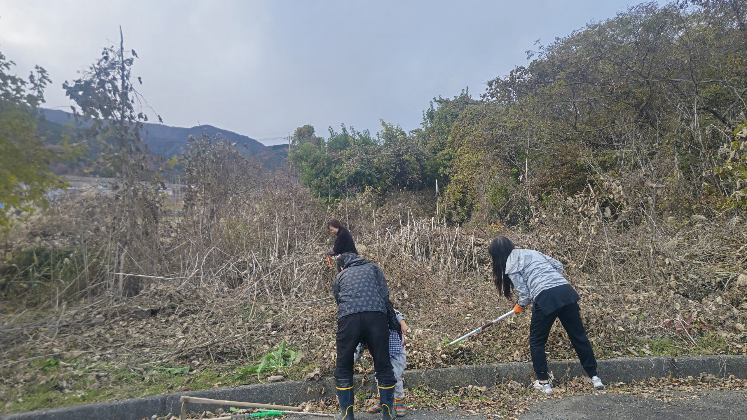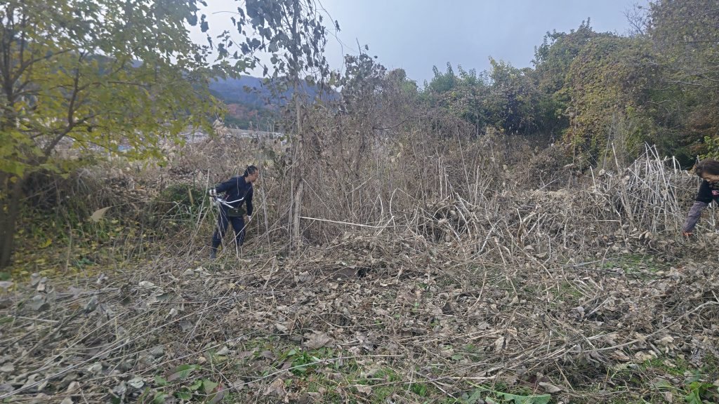 草刈り機は1台しかないので、1台で草を狩り他の人達はツルなどを取り除く作業を行った。