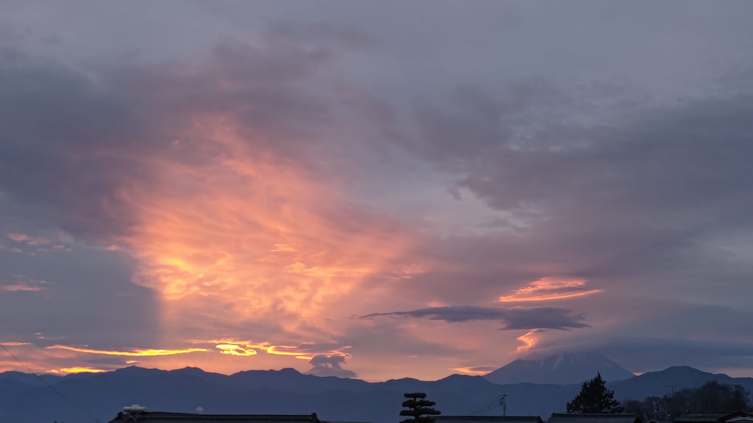 早めに自宅に戻ってスマホを取りに行き、赤く染まった朝焼けを撮影