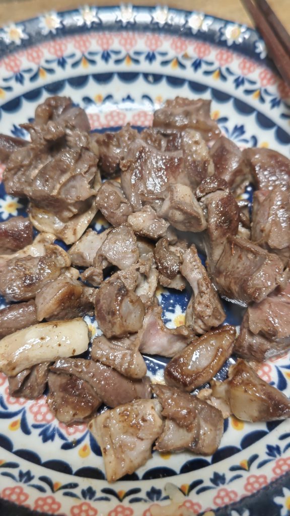焼い終わる頃には匂いは無くなったので、食べてみても野性的な味にはなっておらず、甘みがある美味しい焼き肉になった。
