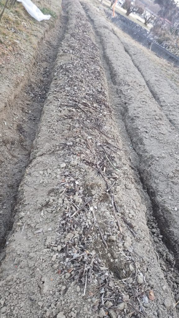 日中は畑作業で300坪を借りている場所の畝作り。