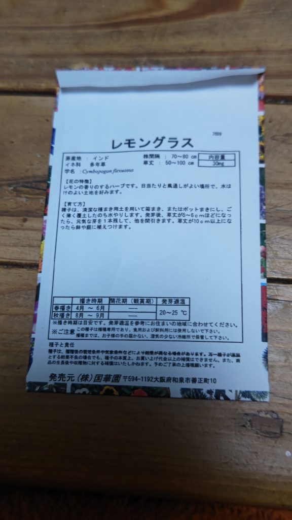レモングラスの種を購入して届いた。