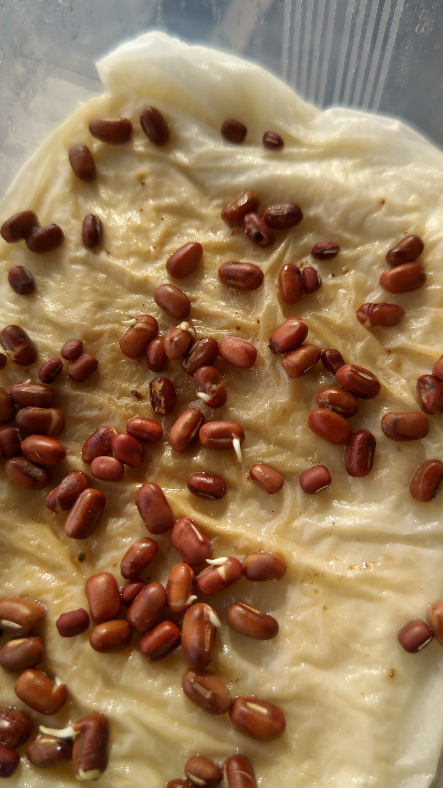 収穫した小豆の芽出し