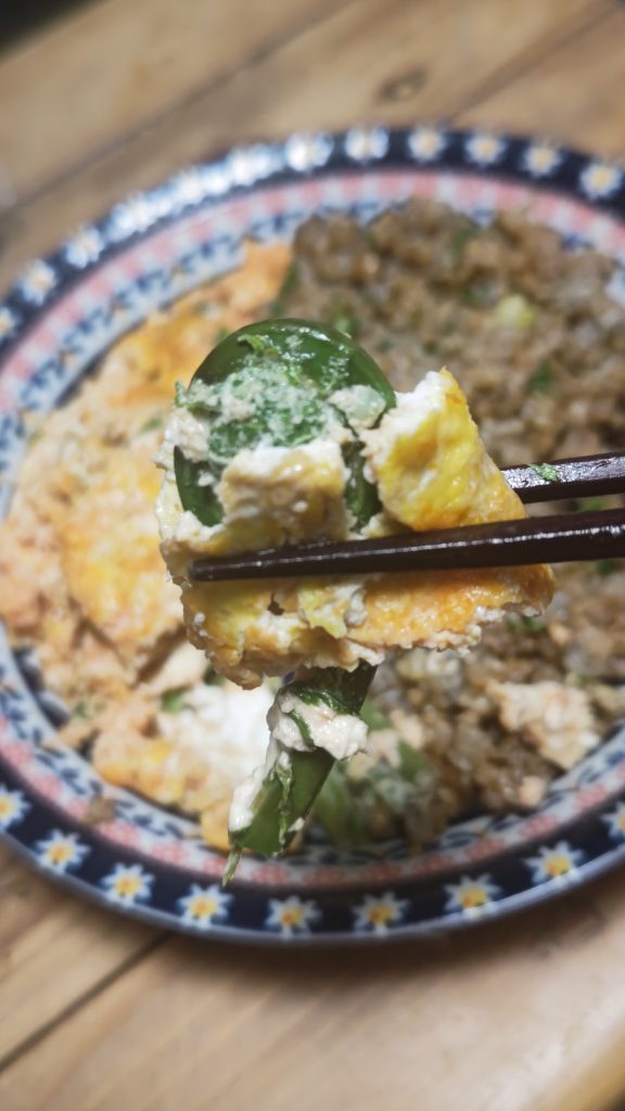 油炒めでも、天ぷらでも美味いが、何か珍しい作り方はないかなぁと考えていたら、オムレツにしてみようと思いついた。