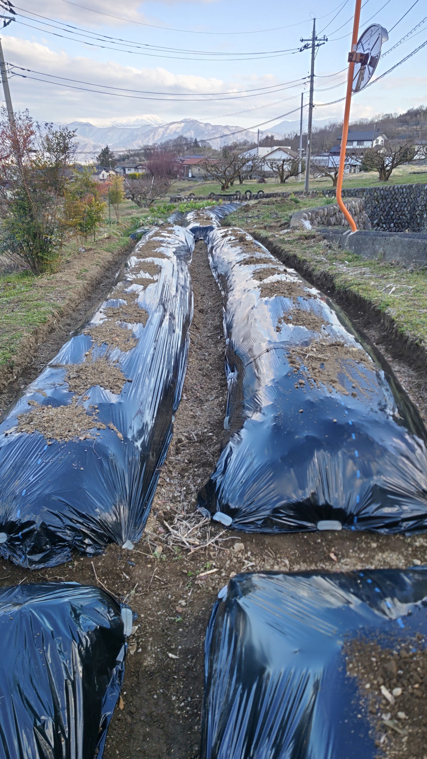 5本の畝にもマルチ張りを行い、全ての畝にマルチを張ることが出来て一安心した。