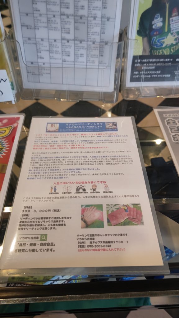 ボーリング場の案内カウンターに置いた広告