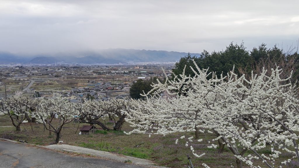 自宅の周りはスモモの木ばかりなので、白い花が一面に咲いている。