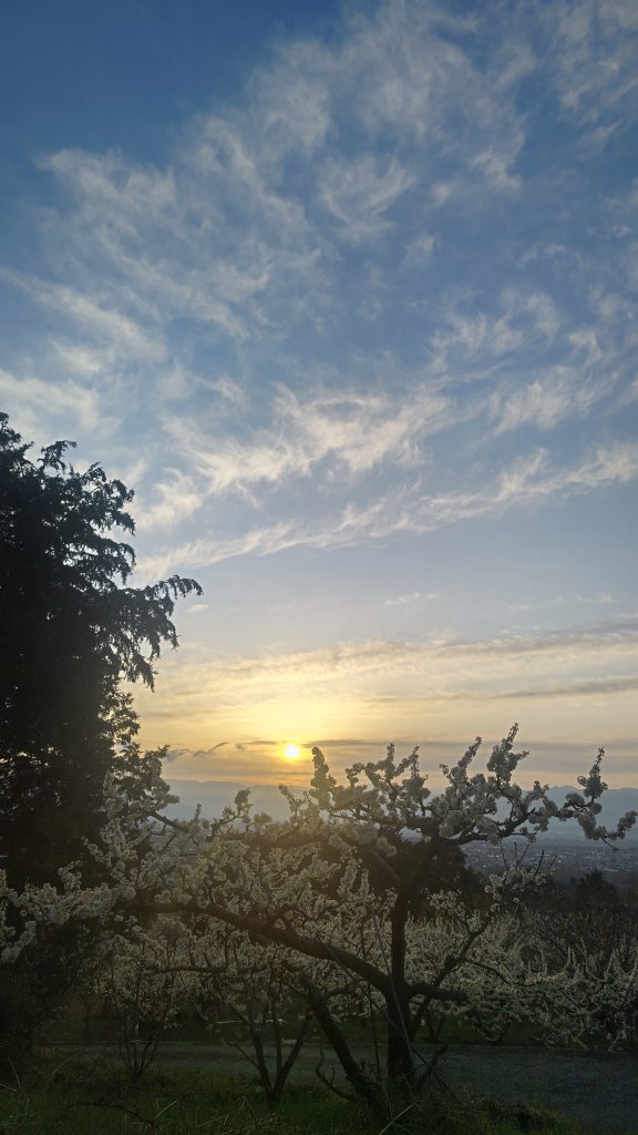 最近は日の出が見られるので、朝焼けの日の出を見るのが楽しみで、サミーの散歩が早くなってきた。
