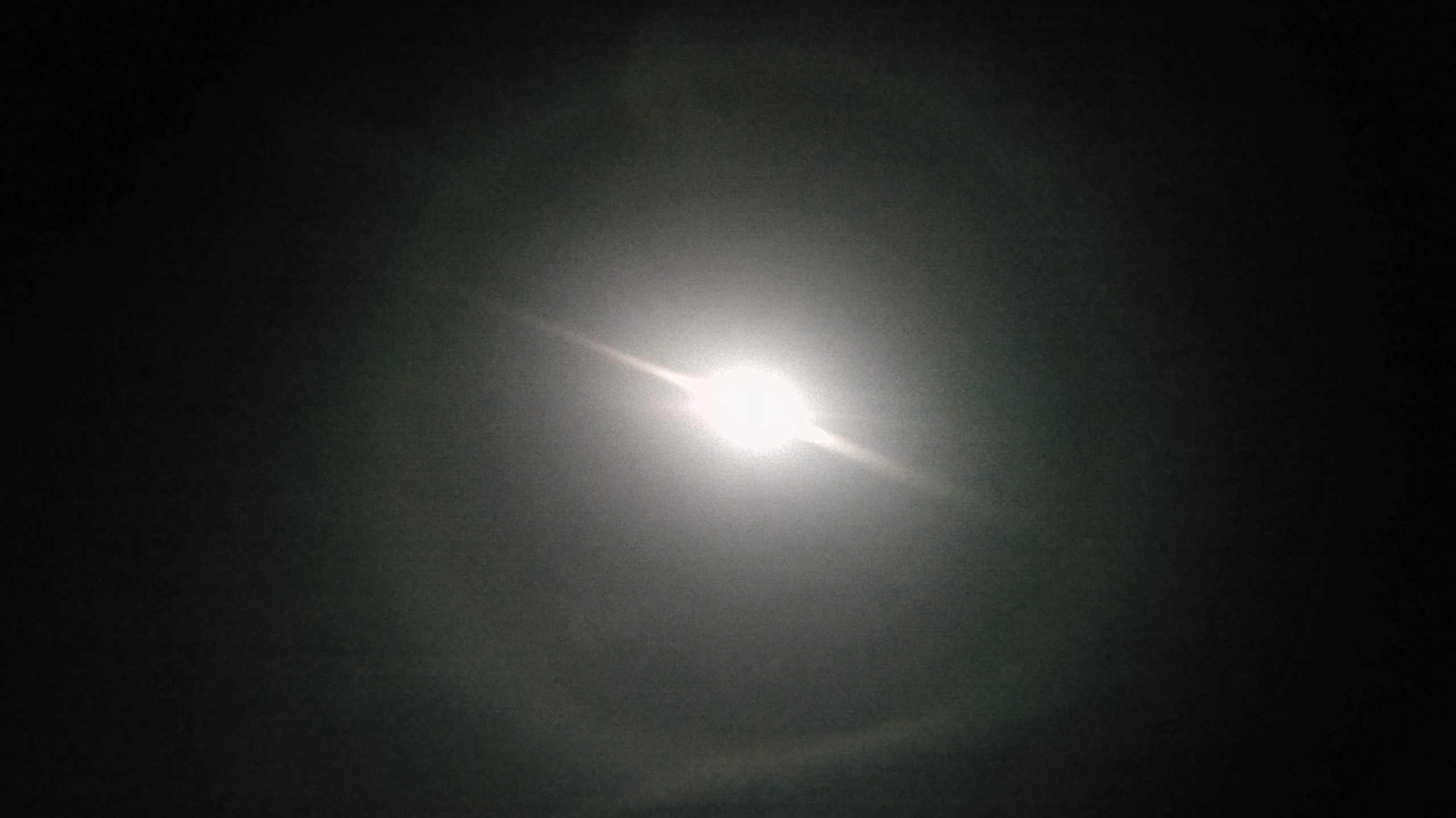 ご近所の人から夜電話が来て、「月がスピリチュアルになっている」というので、電話しながら外に出て月を見たら、月の周りに白い輪が見えた。