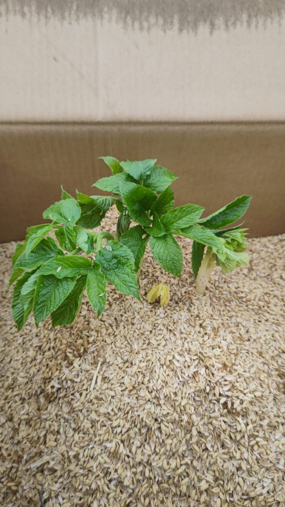 もみ殻に手を入れてみると3本ぐらい出てきているようだ。
