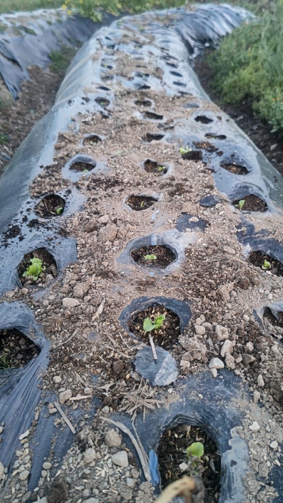 種まきしたレタスが成長してきたので、畝に植え替えてみた。