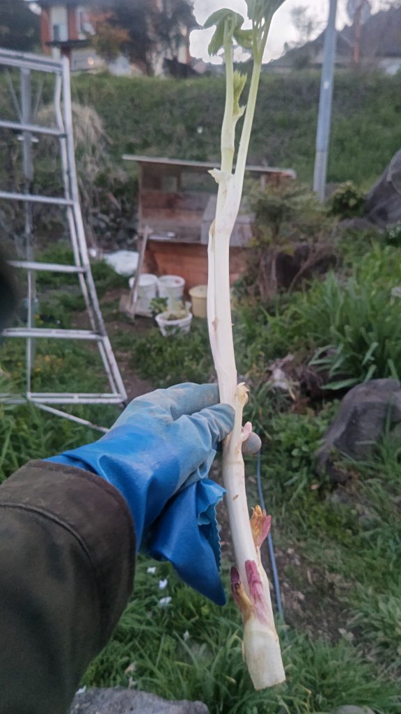 立派に育った初めて収穫したウド、こういう野菜が収穫できるのは嬉しいね。