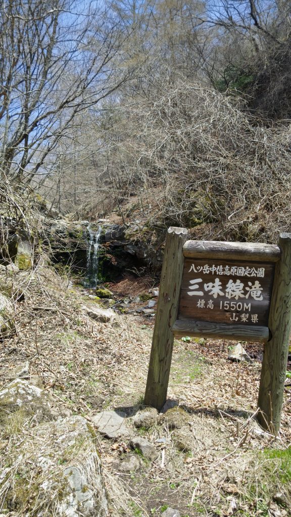 三味線滝へ行くには沢の方へ降りていく必要がある、そちらの方へと下っていったら、5mほどの滝が出てきた。