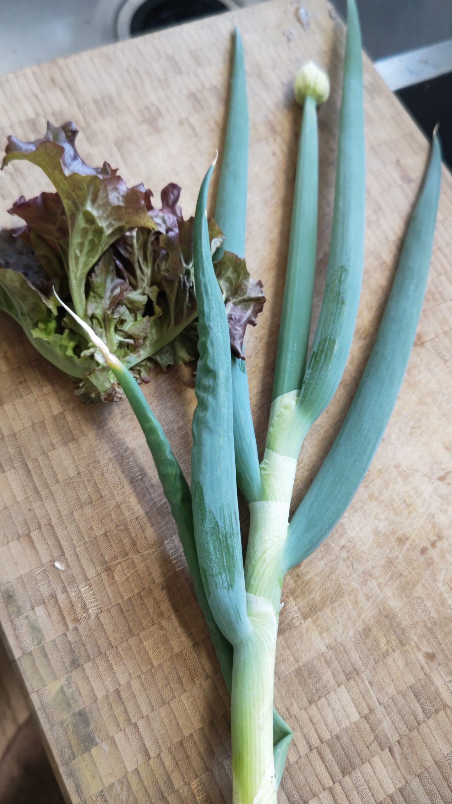 ニラも同様で根を残しておくと、伸びてくるので便利で格安の野菜だ。