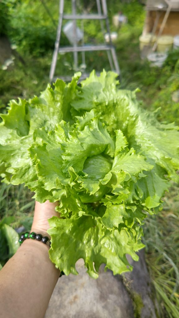 レタスが日々成長し大きくなって結球してきた。2年間レタスを作っていたけれど、満足するような結球するレタスが作れず、結球してもカスカスの状態になっていて軽いレタスばかりだった。 まだサイズ的には小さいけれど、中身がしっかりとした結球してきた...