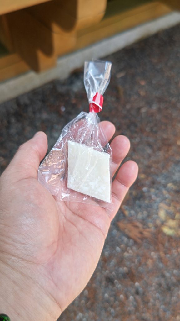 餅まきが始まり動画を撮っていたので餅を拾う気はなかったが、動画撮影を終わった時に目の前に餅が飛んできた。