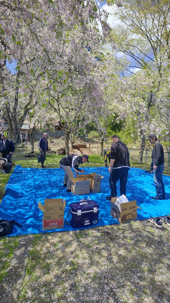 木陰になる場所にブルーシートを敷いて、昼食を食べる準備を行なった。