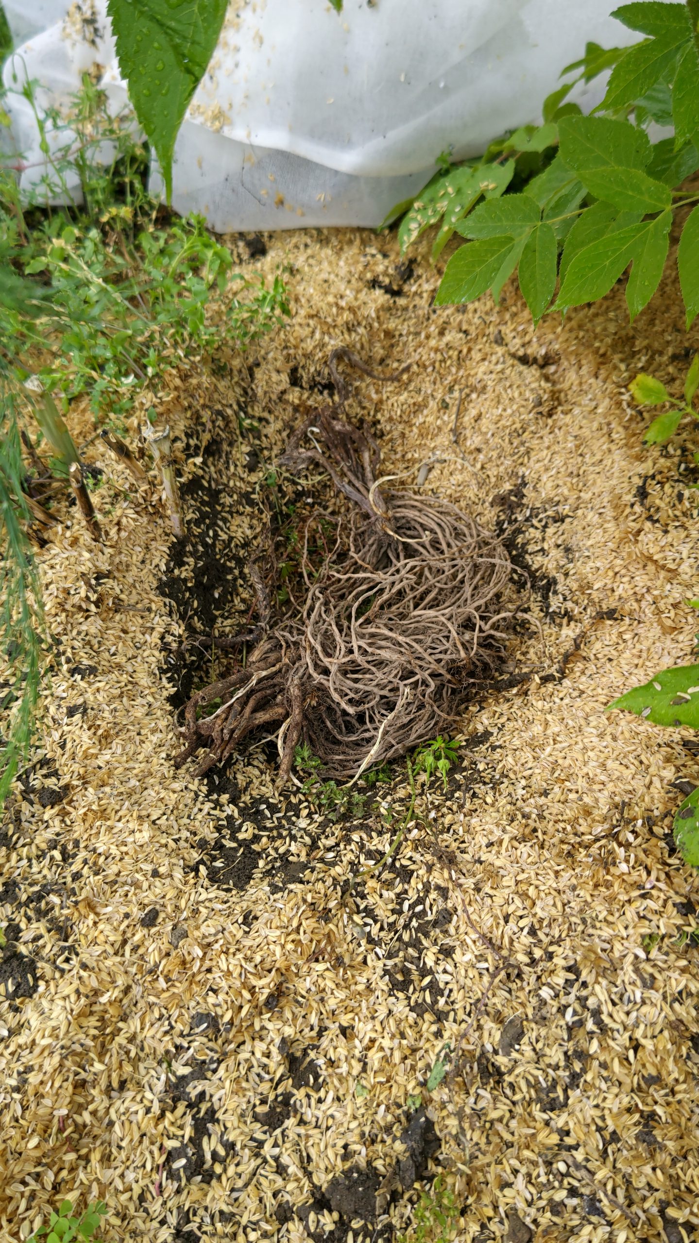 隣にはウドがあり、ウドを伸ばすために使用したもみ殻が沢山ある。