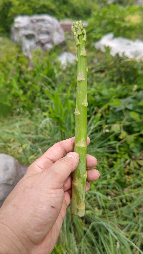 自宅で収穫できるアスパラが、市販品並なのでほんとありがたくいただける。
