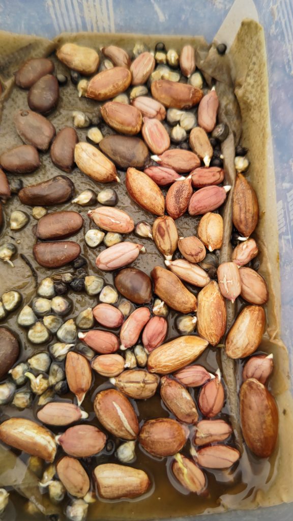 この落花生はご近所からいただいたもので、「水に浸けておいたほうが良い」と言われた種だ。