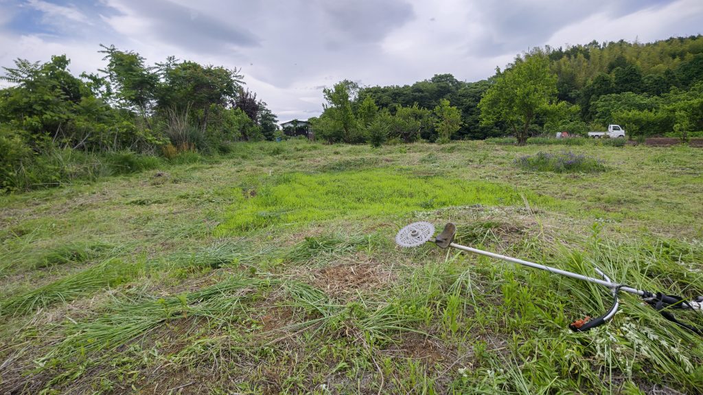 先週は違う場所を3時間ほどかけて草刈りしたけれど、今度は500坪ぐらいある場所を草刈りしたので、4時間ほどかかってしまった。