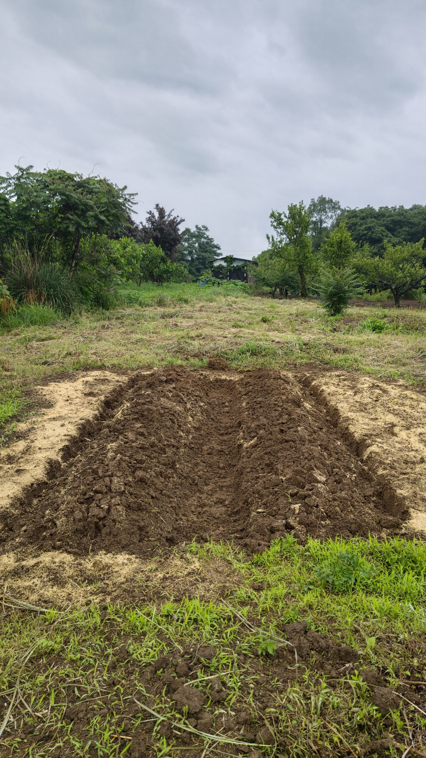 もみ殻を土に混ぜ込んで、ある程度の畝は作ったけれど、木などを埋め込んでいないので、次回は木を埋める予定だ。