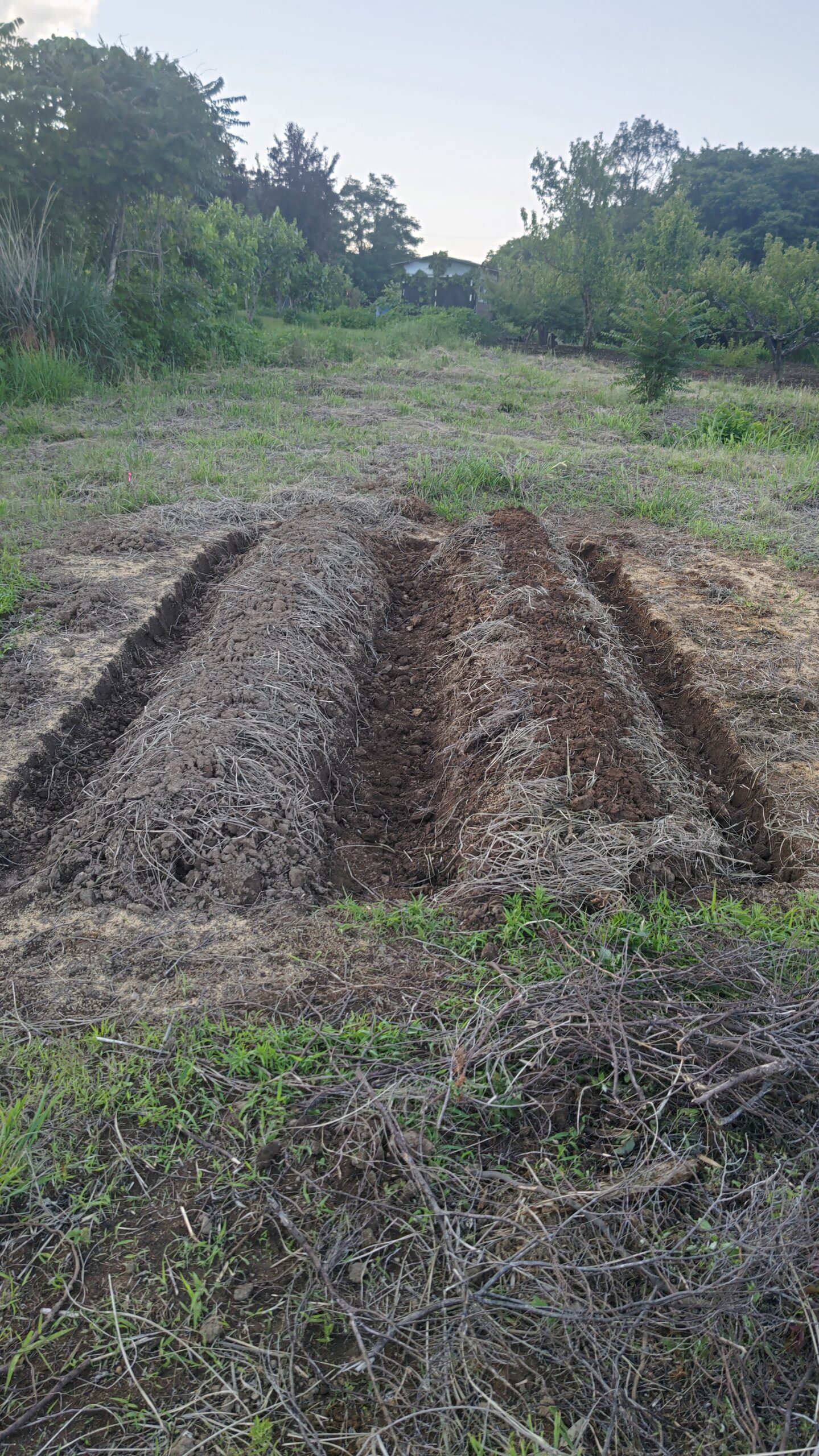 後は両サイドの畔を掘っておいてマルチをかければ完成だ。