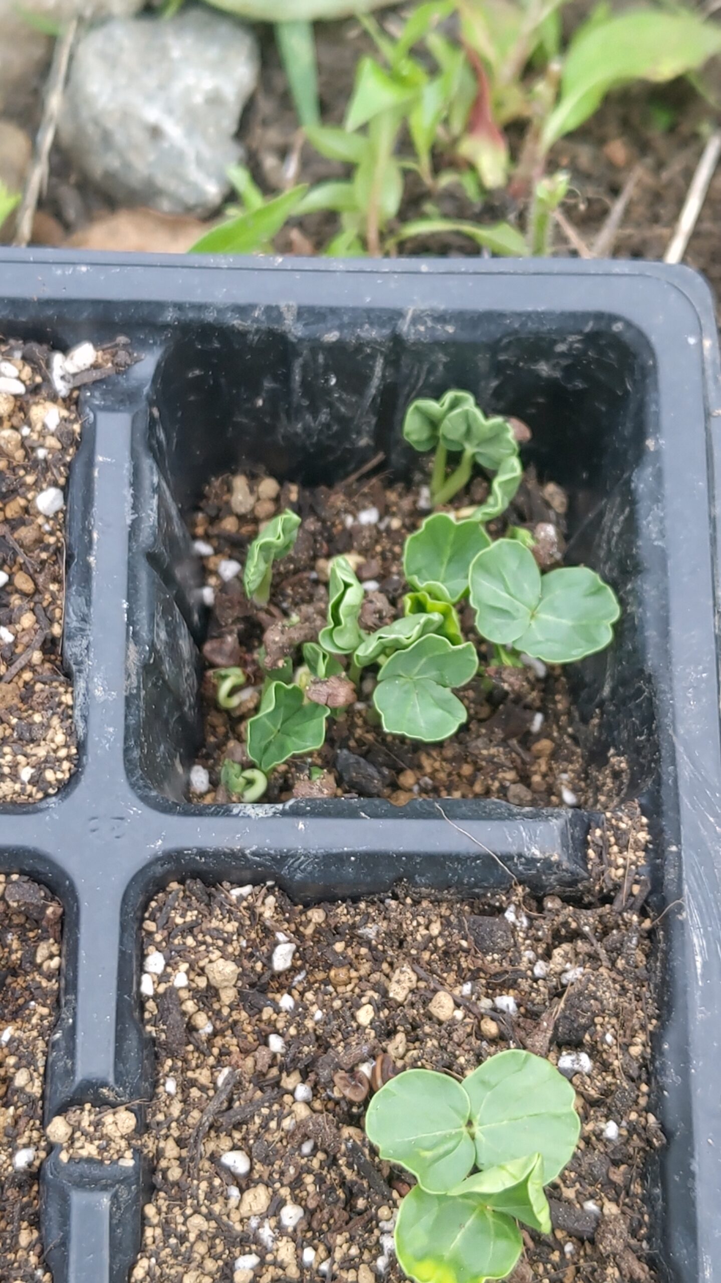 なんでこの場所から沢山芽が出たのか分からないけれど、土が少ないほうが暖かかったのかもしれない。