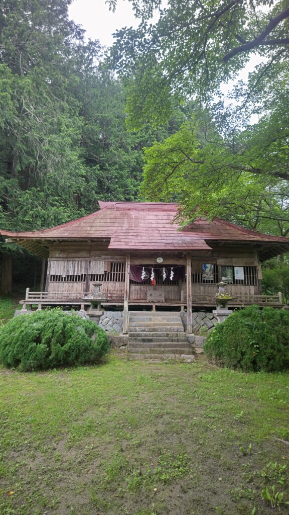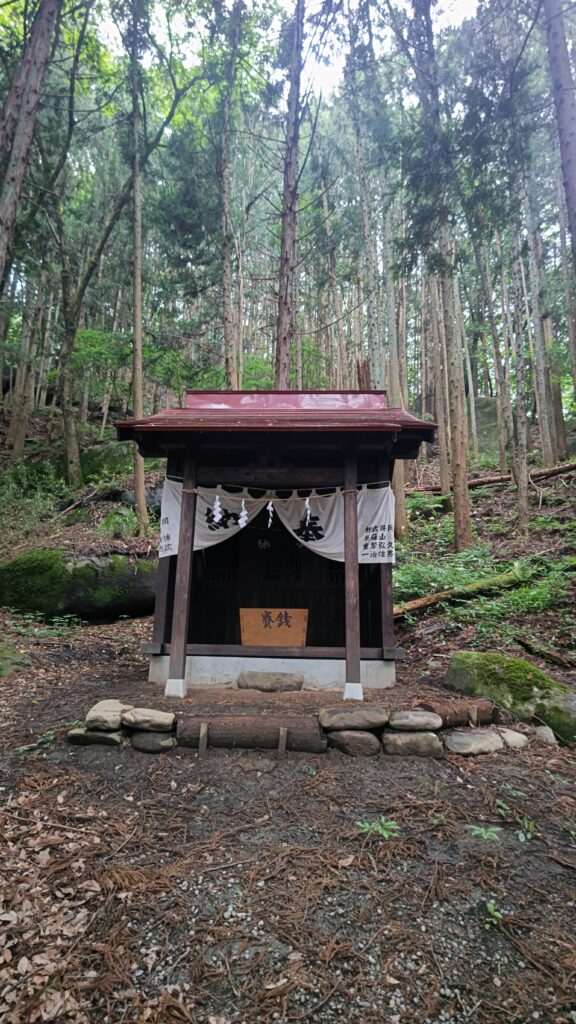 林道のような参道を進んでいくと、赤い屋根の祠が遠くに見えてきた。