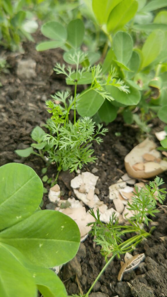 4月頃に植えた人参が、今頃になって芽が出ていた。
