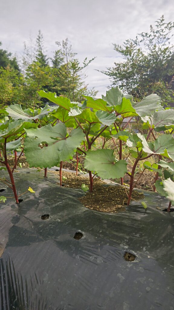 昨年固定種で育てたオクラ、種を採取して植えたら元気よく成長している。