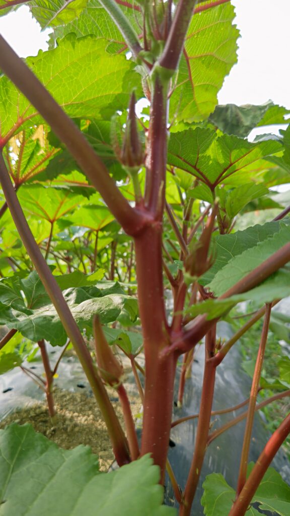このオクラも昨年種を採種しておいたもので、今年も成長してくれた。