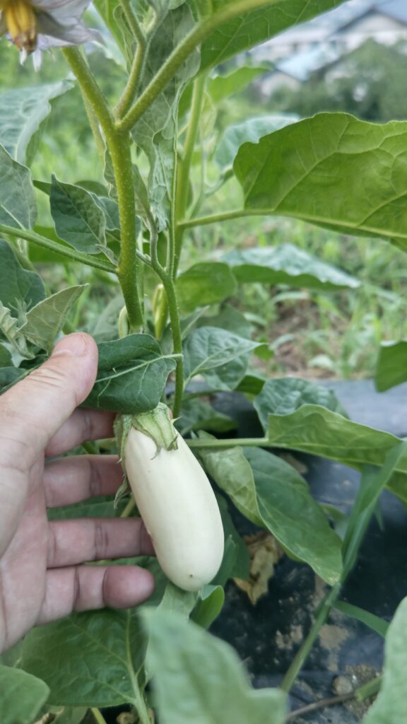 野口の種で白茄子の種を購入して育て、収穫できそうなぐらい成長している。
