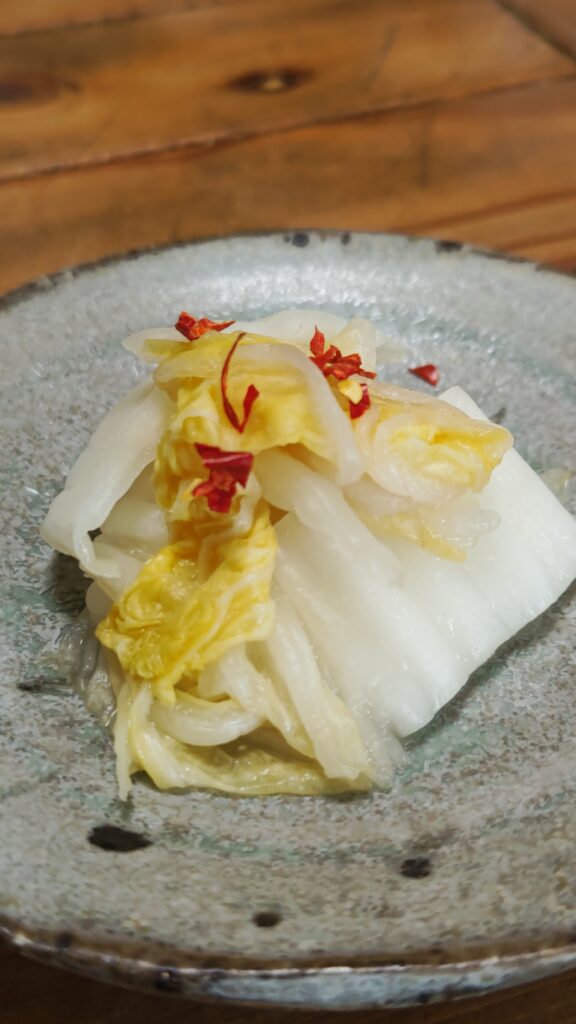 捨て野菜で入れておいた白菜、見た目が美味しくなってきているので食べてみる。