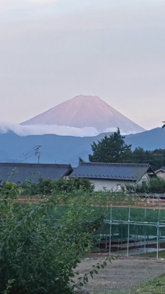 夕方になり妻が「富士山が赤い」というので見ると、赤富士になっていた。