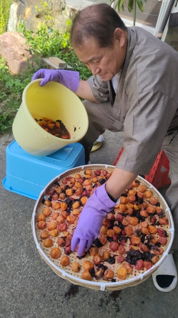 浸けておいた梅干しの半分を干す作業を朝から行った。