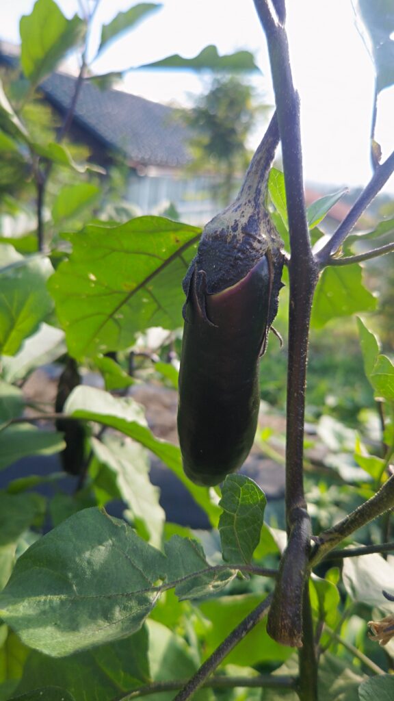 ナスは水不足になると皮が固くなりやすいが、収穫したナスを食べても固くはなかった。