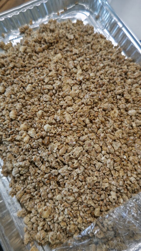 材料は煮大豆、麦、醤油麹菌で発酵させる。