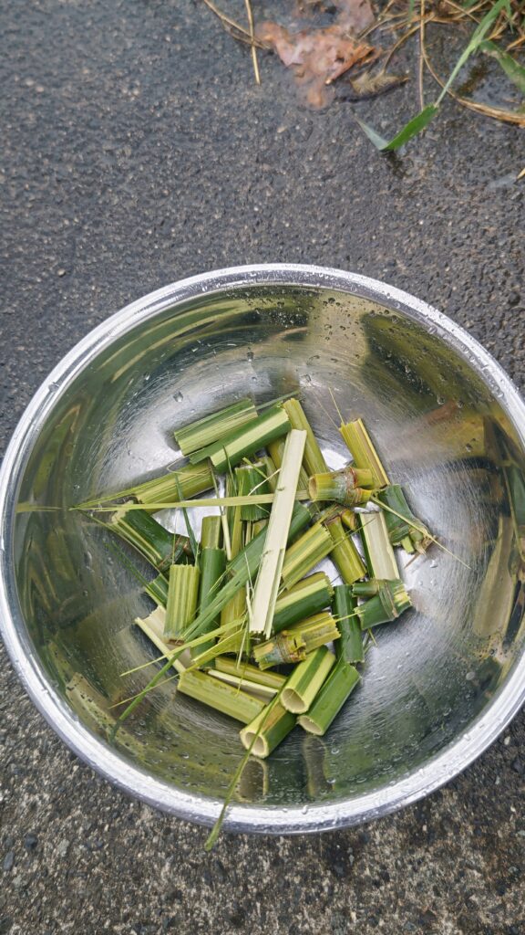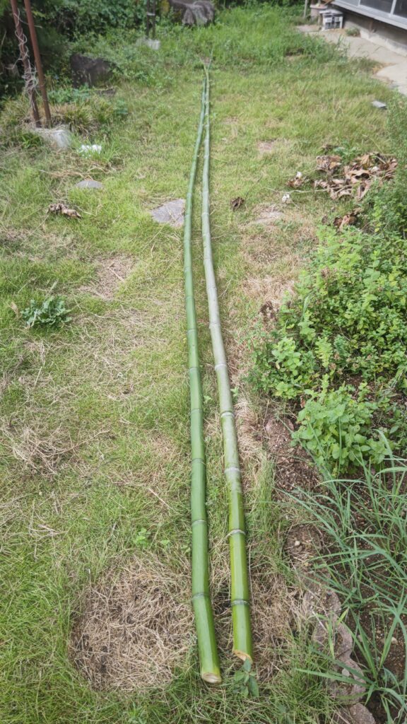 長い竹2本、使うのは先の部分だけなので、殆どは余る。