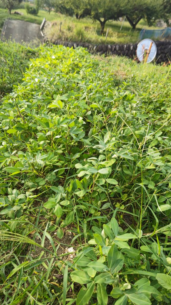 収穫時期は10月近くだろう、まだまだ落花生の葉は元気そうだよ。