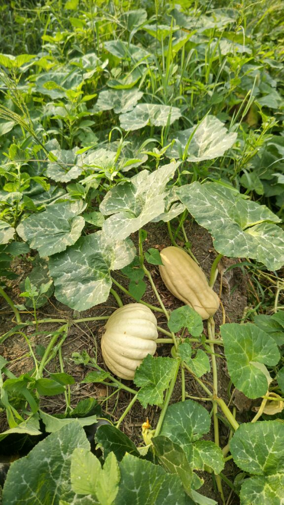 昨年は白川砂糖かぼちゃが豊作で、50個ぐらい収穫できたが、今年はそれほど実っていない感じだ。