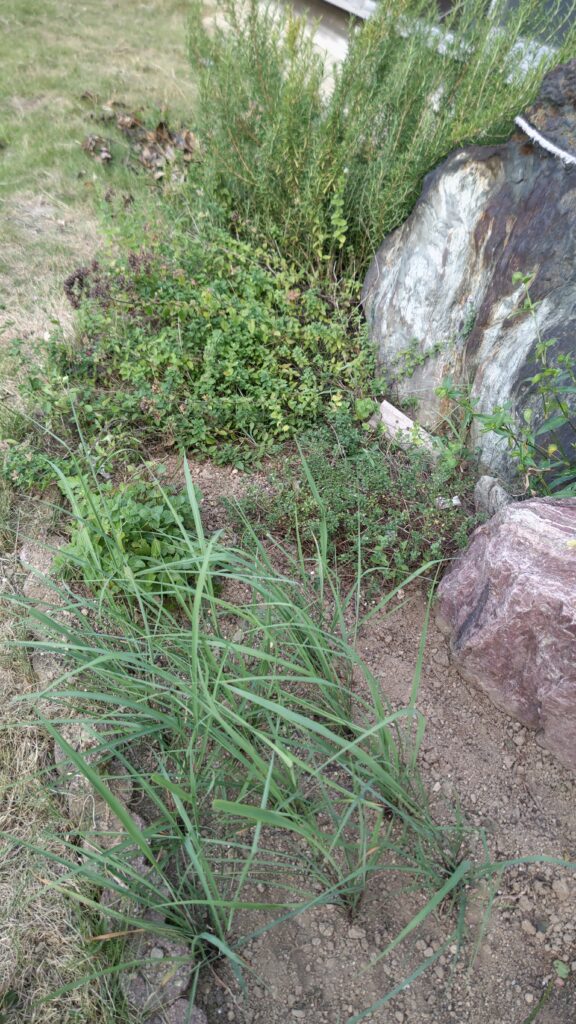 今年種から育てたレモングラス、ホームセンターで1ヶ月前に購入した、レモンバーム、1年以上前に購入した、オレガノ、タイム、ローズマリーが育っている。