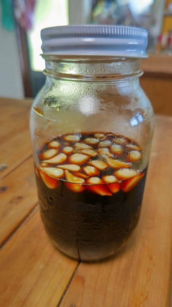 3日前に作ったにんにく醤油、香りは付いたのだろうか。