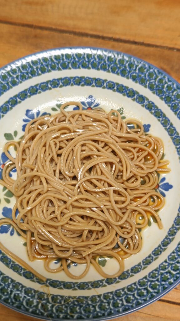お昼ご飯にそばを茹でたので、にんにく醤油で食べてみたら「美味い!」