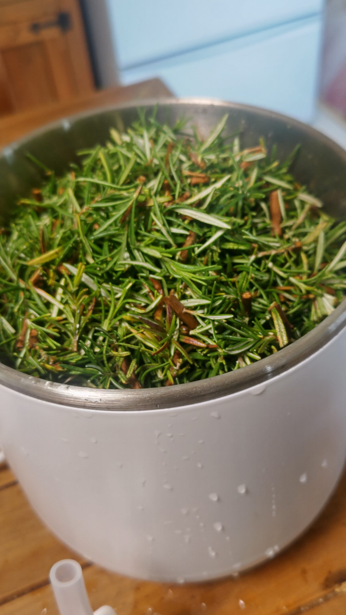 沢山収穫してきて枝を水で洗い、細かく切って蒸留水機に入れる。