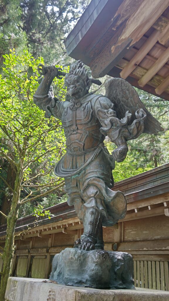 大きな烏天狗の銅像が、数カ所に置いてある。