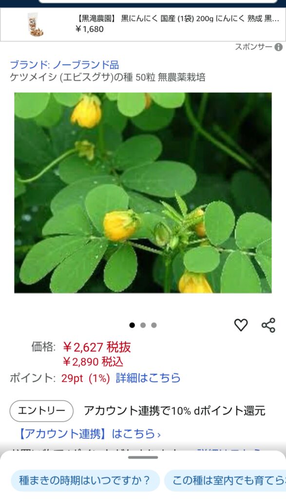 エビスクサは自然農法で作っているので、化学肥料なし、無農薬で作っているが、無農薬で作っているとどのくらいで販売されているか調べてみた。
