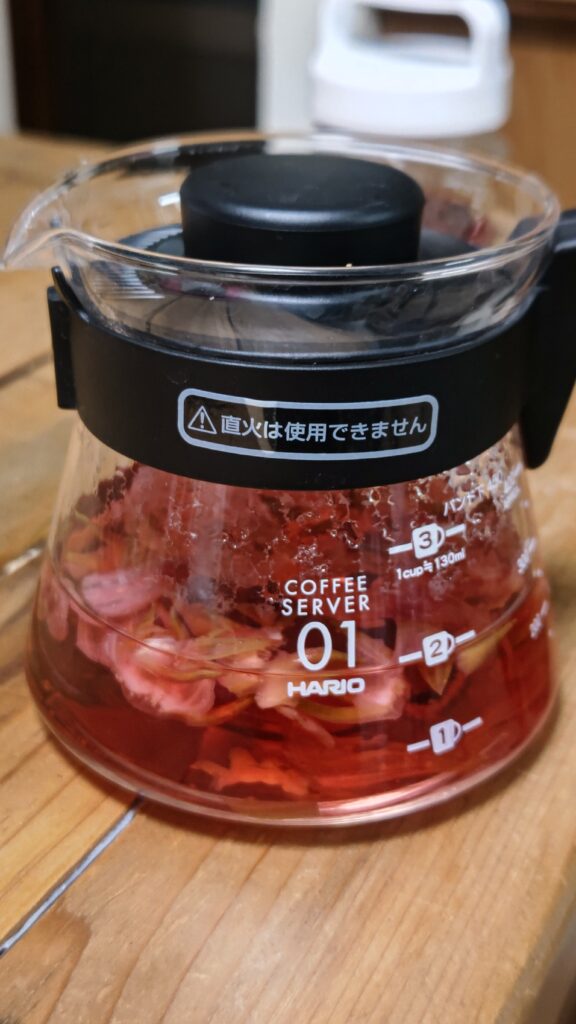 これに砂糖を入れたらローゼルジュースになる。