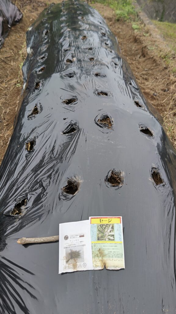 新たに作った畝にほとんど販売されていないような、固定種の種を購入して植えた。