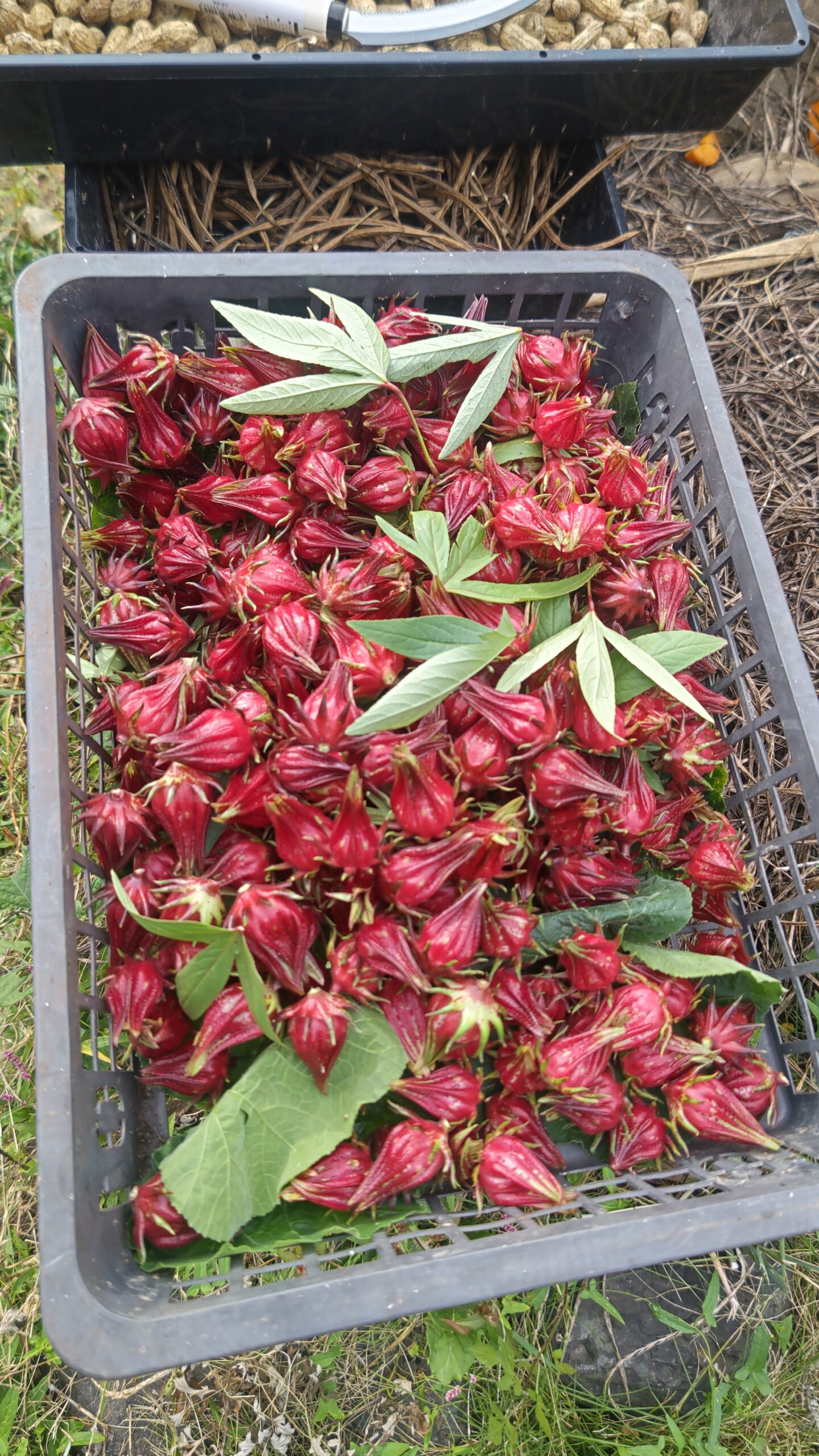 たっぷりと収穫したローゼル、まだ半分も収穫していない感じだ。